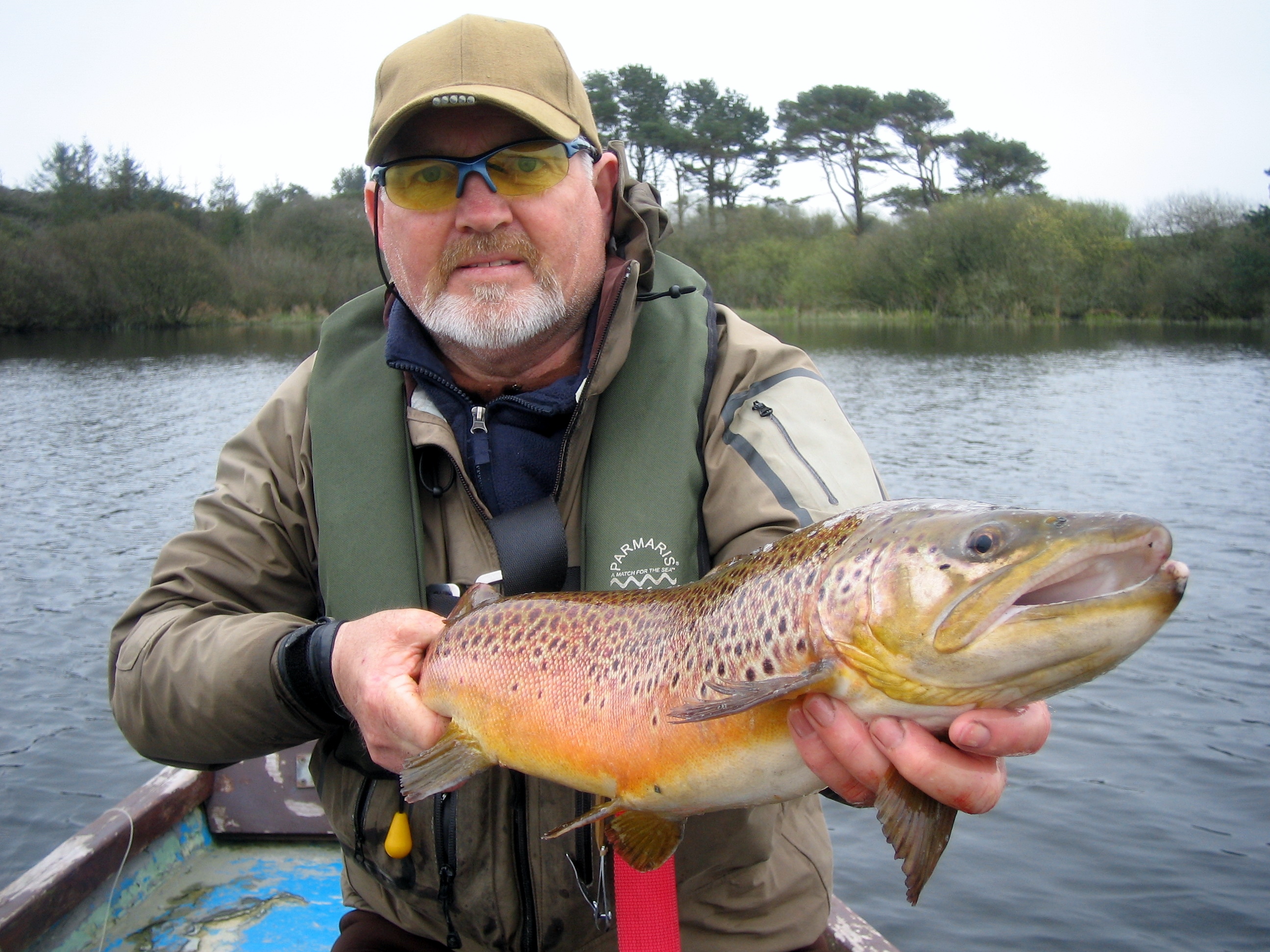 Mike from Clonmel joined the Waterford Fly Fishing Club for this year and while he had been catching some quality trout he was keen to learn the nuances of buzzer fishing, particularly with the large browns that were moving in the lakes already this season. So we arranged to meet up at Carrigavantry on a day with a nice light southerly wind. Conditions were looking good for some buzzer fishing and there was a reasonable amount of small buzzer hatching too. Once we were on the lake I was showing Mike how I fish buzzers on these lakes when WHAM! I was into a serious trout. It turned out to be a superb brownie. Just what we were after.