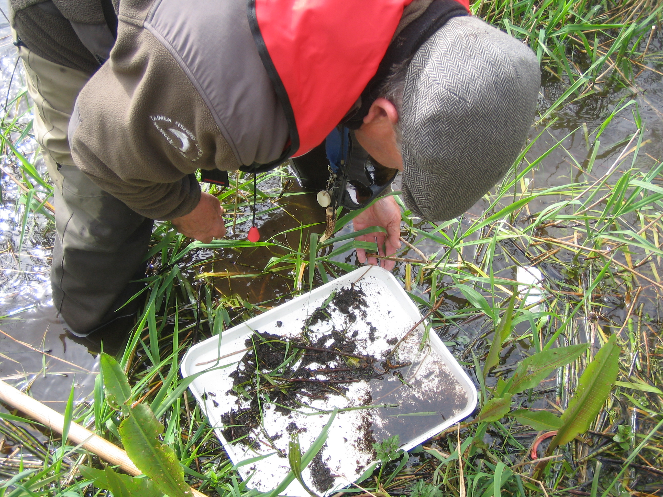 I was privileged to spend a day on Carrigavantry Reservoir with renowned fisheries scientist Dr Ken Whelan. This was Ken’s first visit to the Waterford Reservoir but I doubt it will be his last. It was a very enjoyable and rewarding experience to spend some time with Ken who has such an in depth knowledge of fisheries related matters. Ken had his aquatic insect collecting kit with him and we tried several areas of the lake to see what food sources were available for the trout.