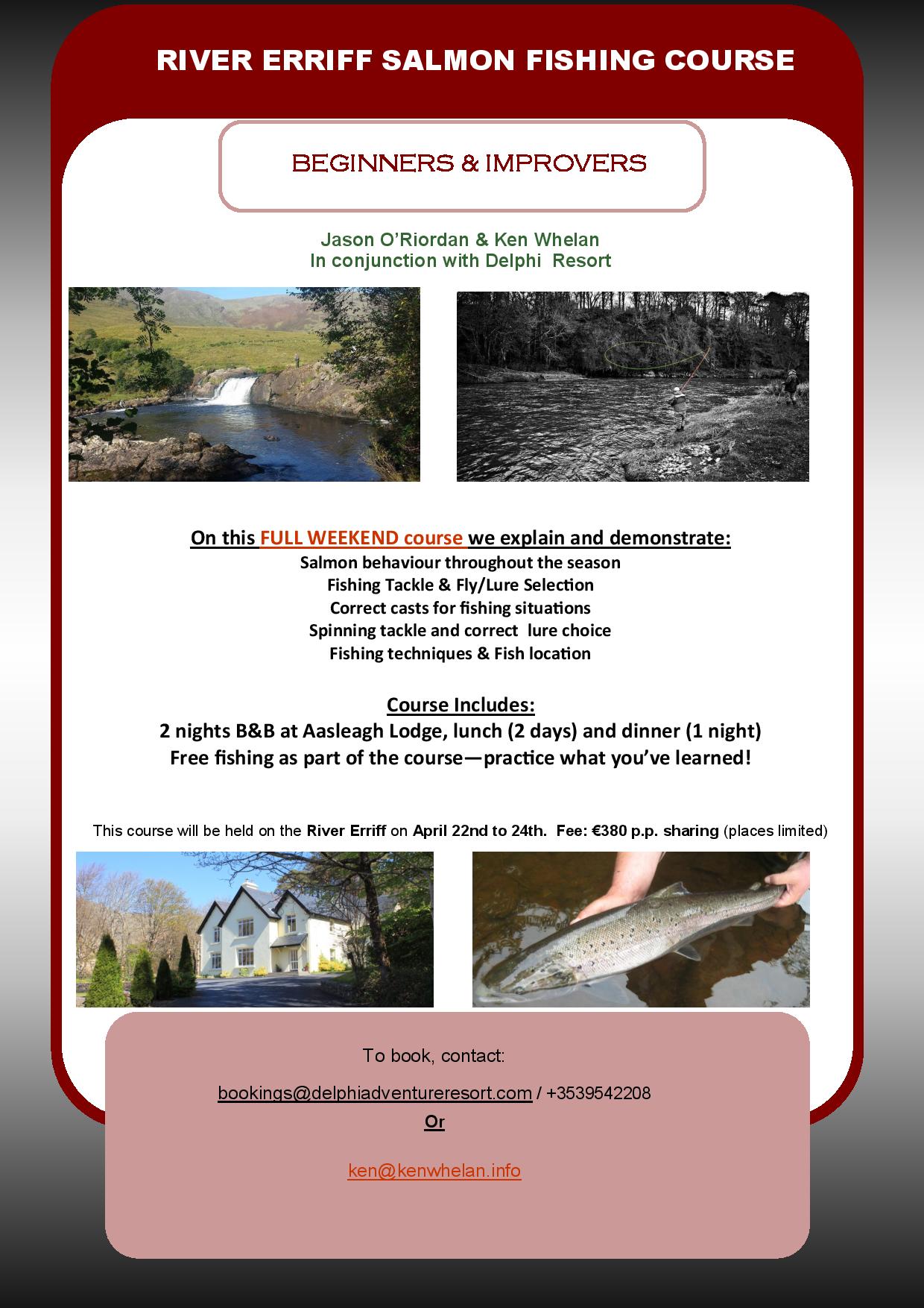 The venues for this year are really great. The Salmon course takes place over the course of a full weekend on the River Erriff (in conjunction with Delphi Resort) and there is some top class accommodation available as part of the whole package. Participants will stay at the wonderful Aashleagh lodge and meals are also included.