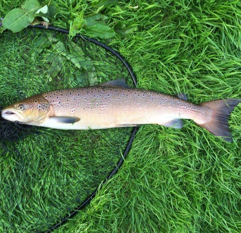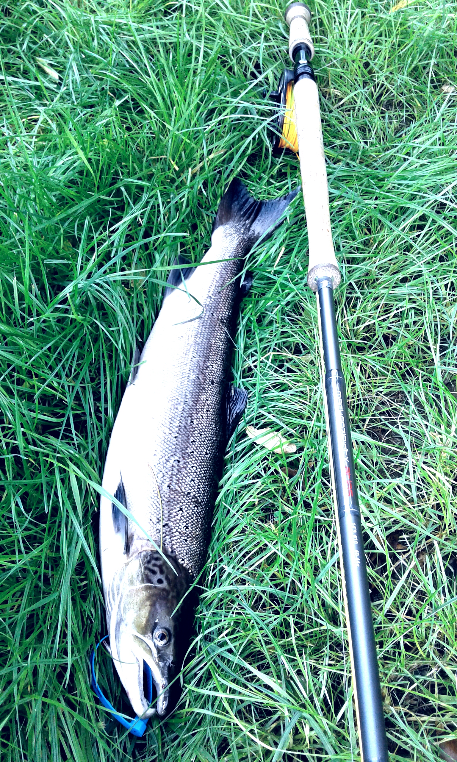 Guiding was really busy all summer and of course family time is very important too, especially when you have two young kids. Anyway, there was little time to sit down and write blogs about the fishing. To be fair, salmon fishing slowed down towards the end of summer this year. As always September is a mad hectic month for me as customers are keen to finish off the freshwater season with a salmon, trout or seatrout. Saltwater anglers know that some of the best bass tides of the year fall in September too. There was a lack of fresh salmon in most rivers and a few days on the lower Munster Blackwater with clients resulted in three salmon landed, two lost and a few seatrout in the mix. The water was very high then dropping nicely and clearing then rising fast all in the space of a few days! All but one of the fish the guys landed and lost were red. The high coloured water meant fishing from the bank rather than wading so we had to use the landing net and place the fish up on the grass for a quick photo before release.