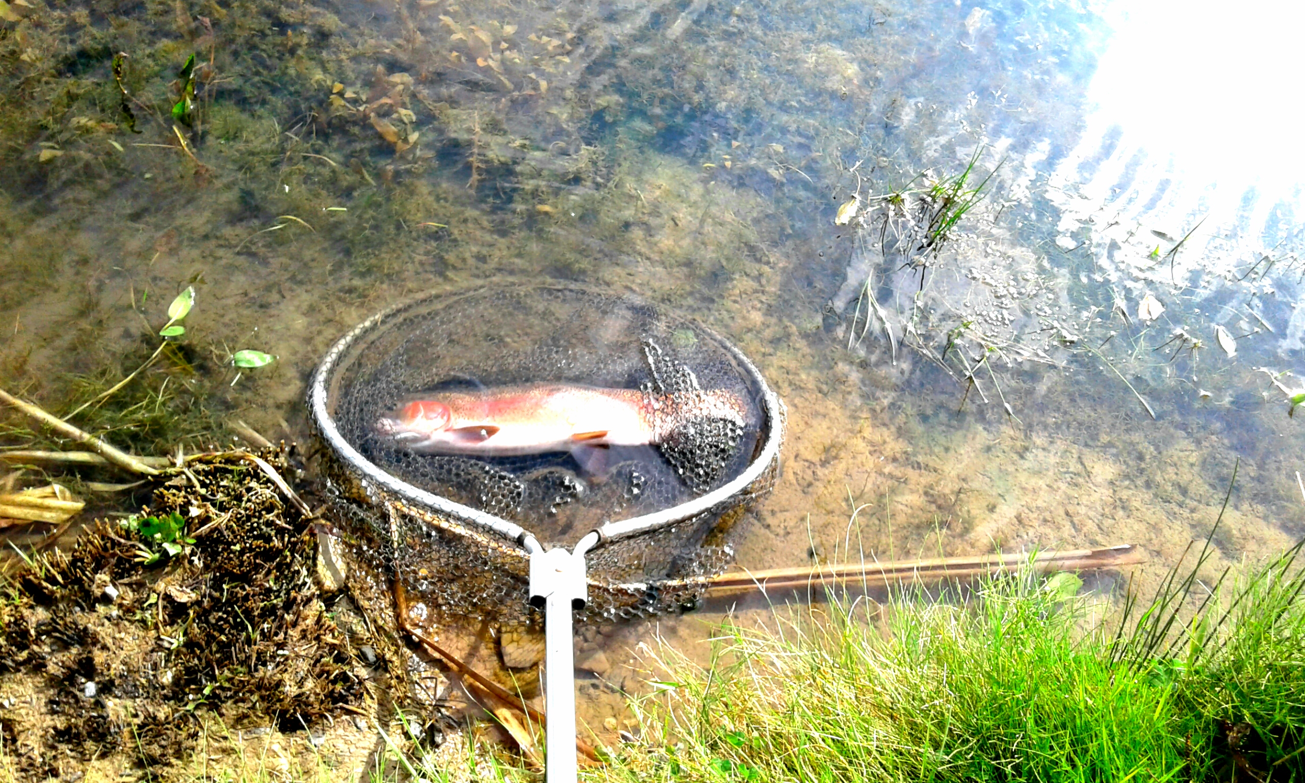 As often happens you can get a day or two when the sea conditions make bass fishing a less than promising option. However, the great thing about Dungarvan is that there are other good fishing options available, such as salmon or trout. So when the water got really discoloured Paul agreed to do some fly fishing over at Ardaire Springs in Mooncoin. I lost count of the amount of quality trout he landed on dries!