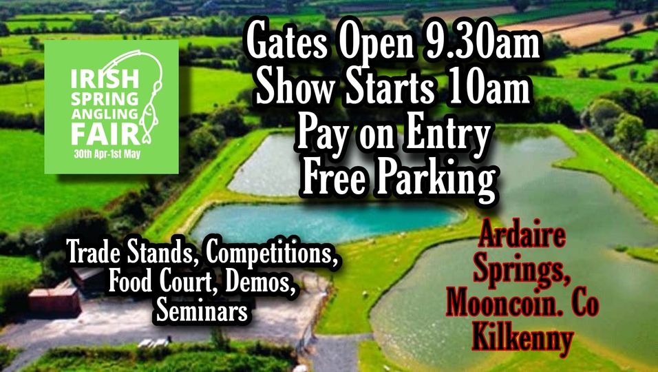The Fair is taking place at Ardaire Springs Angling Centre in Mooncoin, Kilkenny which is not far from where I am based. This is an ideal venue for an angling fair as there is plenty of water for demos, a large log cabin for talks, an area for food stands and displaying boats and trailers and a lots of space for an exhibitor marquee and free parking.