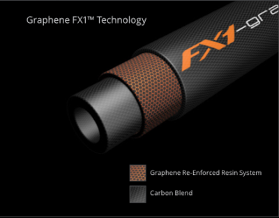 Graphene is incorporated in the FX1 rod in the form of multi-walled carbon nanotubes – 1 atom thick sheets of hexagonally bonded carbon formed into tubes and added to a state of the art resin. Being 32 times stiffer than steel per unit mass. The sub-microscopic cylinders of carbon on a weight-for-weight basis are at least 120, and up to 300 times stronger than steel and 30 times stronger than Kevlar!